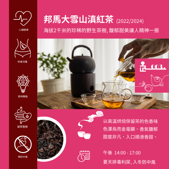 此茶品採自邦馬大雪山深處的野生茶樹, 百分百天然有機, 更自帶邦那大雪山之山頭的自然氣息, 甘香甜美讓人精神一振。